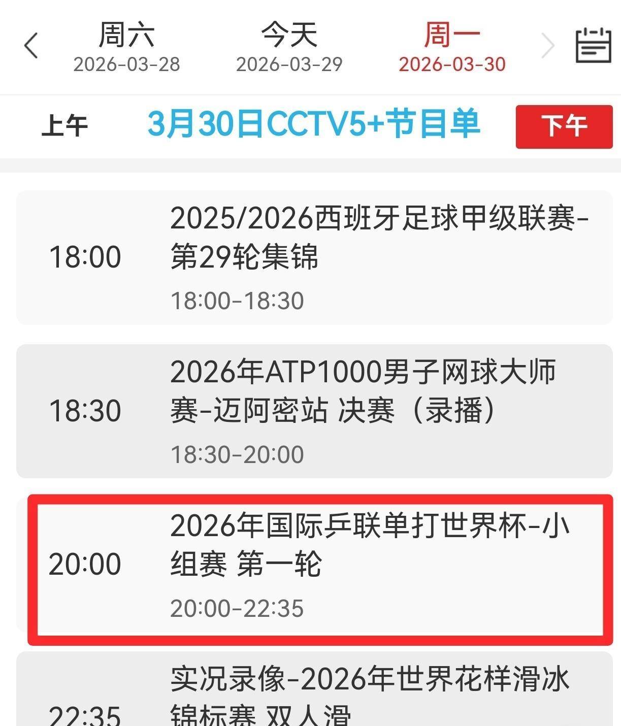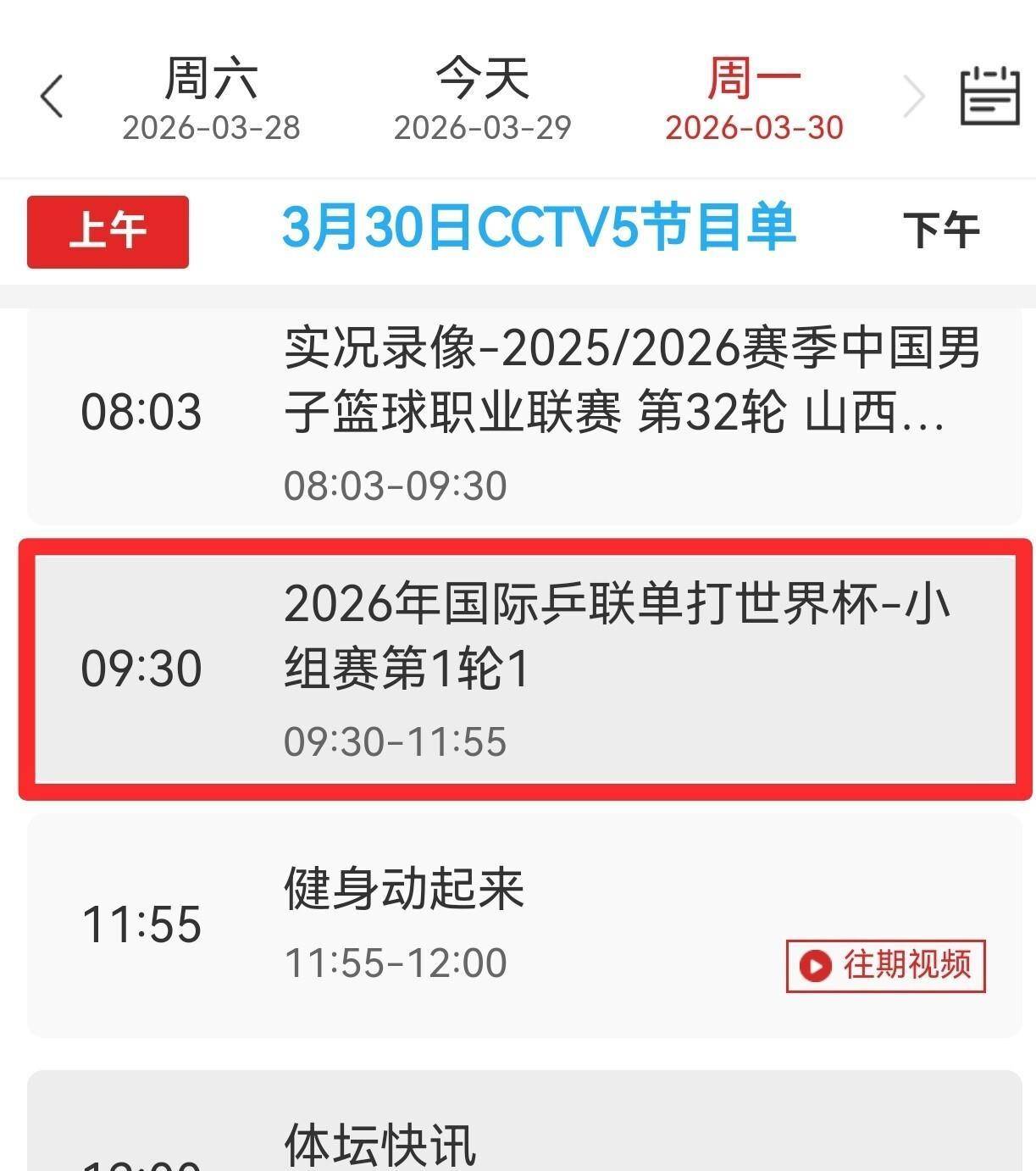 今天上午的直播从9点半就开始了,会先播一些外协会选手的比赛。 国乒第一场球10点40分开始,时间安排得挺紧凑。 晚上换到CCTV5 频道直播,可能有些球迷会找不到,记得提前设置好频道。