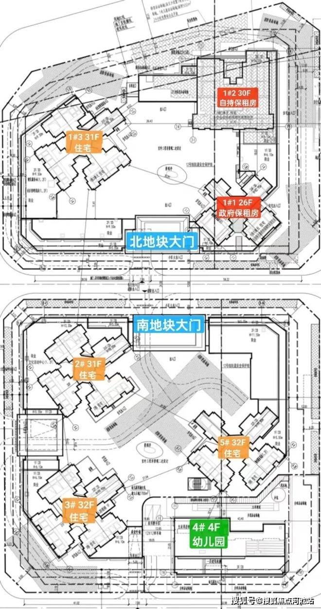 2、3、5栋为纯住宅,总高31-32层,4栋为1所4层2970㎡幼儿园,容积率4.3。