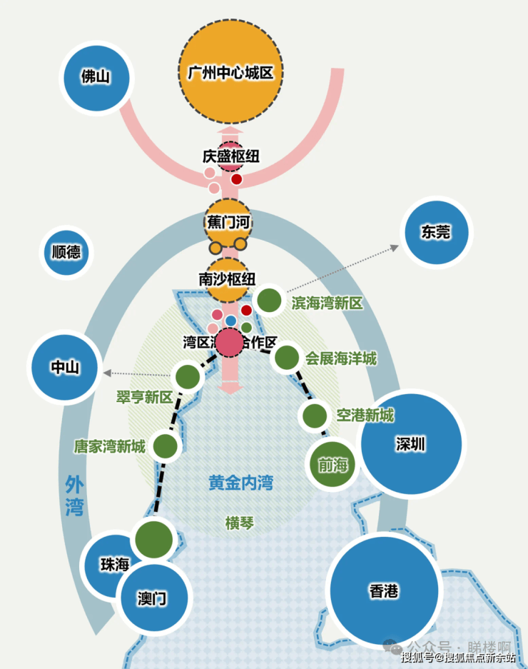 着力打造环珠江口100公里“黄金内湾”,带动广州、深圳、珠江口西岸三大都市圈协同发展、聚势腾飞。