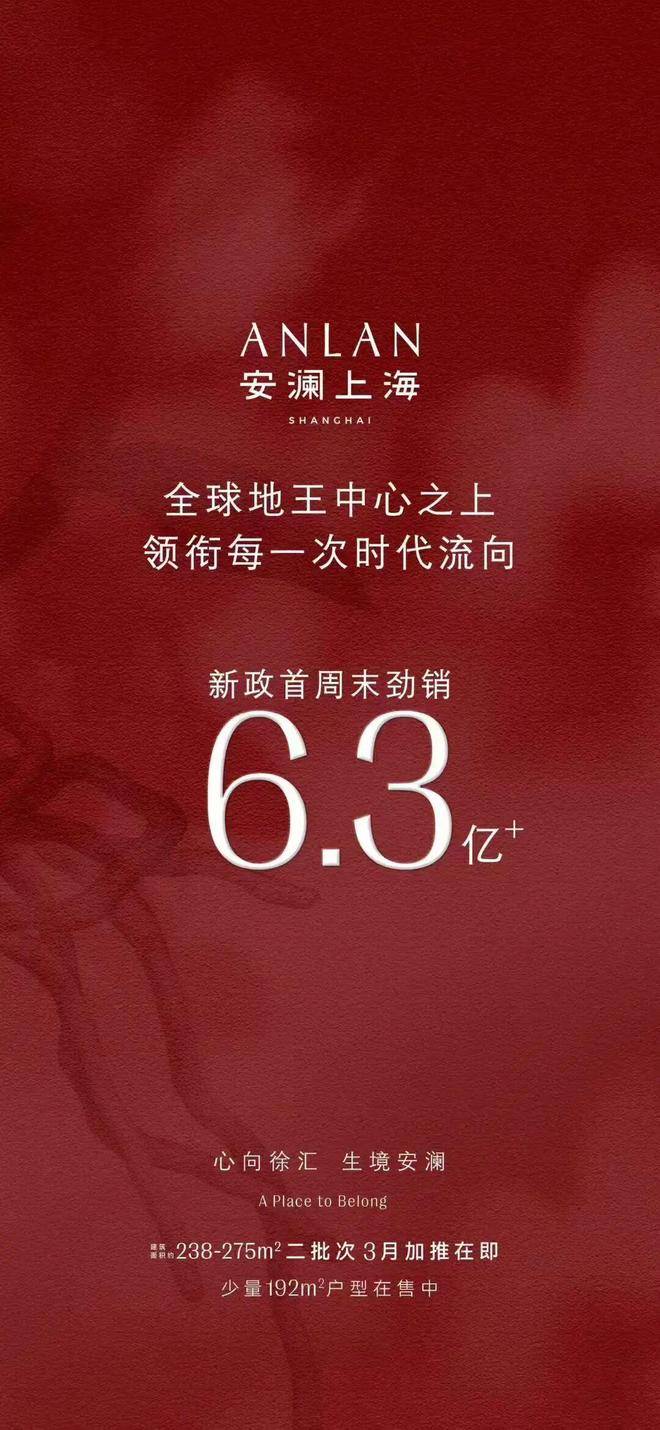 项目自身即是一座约20万方的超大体量综合体,集高端住宅、精品商业、品质办公于一体,内部配套全能,外部资源丰沛,真正实现“出则繁华,入则宁静”。**最后珍藏,200㎡+收官之作**市场机遇稍纵即逝,稀缺产品更是分秒递减。安澜上海二批次加推在即,此次推出的3号楼,不仅享有“楼王级”景观视野,更将是项目最后一批建面约200㎡+的珍品户型。- **主力户型**:约238㎡、275㎡全景舱大宅,高实得率,空间尺度阔绰。